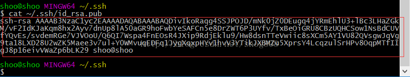 2.或者你也可以直接输入命令 :cat ~/.ssh/id_rsa.pub