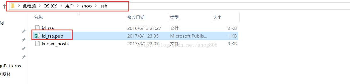 3.或者你也可以直接打开你用户(一般都是 Administrator)下的 .ssh 文件夹,打开它里面的 id_rsa.pub 文件,如图: