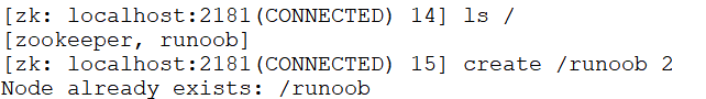 已存在 /runoob 节点,再次创建会提示已经存在。