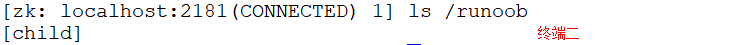 ctrl+c 关闭终端一连接后,查询终端二 /runoob/echild 节点消失。